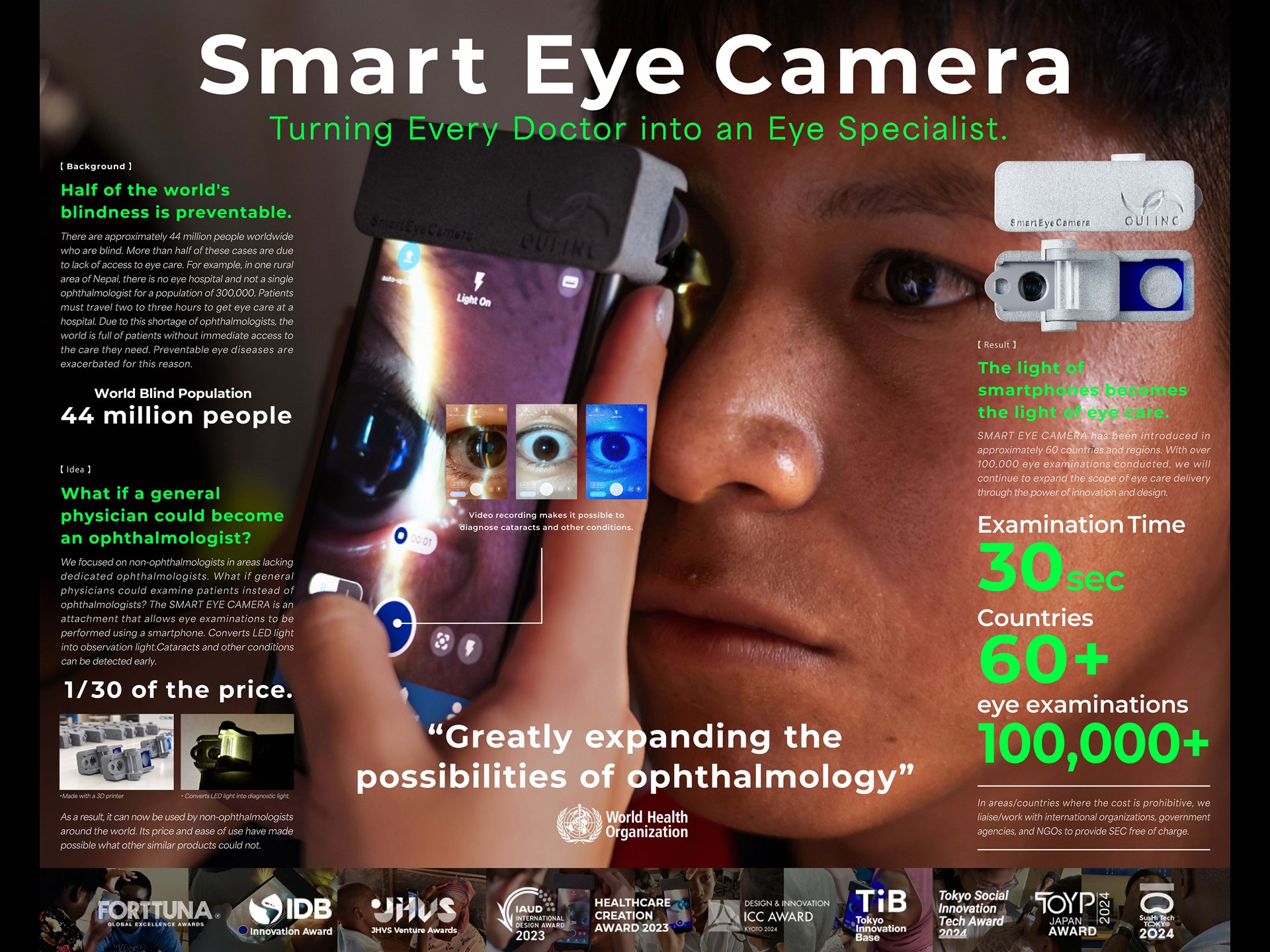 What if those doctors could become ophthalmologists? Could the global shortage of ophthalmologists be resolved? What we developed is the Smart Eye Camera.